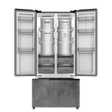 Формат: French-door (распашной), 3 камеры, Full No Frost, инверторный • Обьем: холодильник 332 л, морозилка 171 л • Отсеки: зона свежести, мультизона