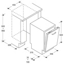 Расположение: встраиваемая • Возможность встраивания: полновстраиваемая • Класс мойки: A • Размеры: 448x820x570 мм • Цвет: белый • Вместимость (комплектов посуды): 9 • Управление: электронное • Программы мойки: 7 программ (стандартная мойка, мойка сильнозагрязненной посуды, быстрая мойка, экономичный режим, режим замачивания, деликатная мойка) • Количество температурных режимов: 5 • Сушка: есть, конденсационная