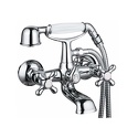 Назначение: ванна+душ • Конструкция: двухрычажный • Монтаж: вертикальный • Подводка: жесткая • Монтажные отверстия: 2 отверстия • Форма излива: традиционная • Душевая лейка в комплекте: есть • Держатель для душевой лейки: на смесителе • Аэратор: есть