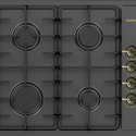 Поверхность: варочная панель • Тип поверхности: газовая • Рабочая поверхность: эмаль • Число конфорок: 4 • Установка: независимая • Газовые конфорки: всего - 4 • Газ-контроль конфорок: есть • Тип управления: механическое • Переключатели: поворотные • Размеры: 585x505x97 мм • Размер ниши для встраивания: 555x475 мм • Цвет: панель - антрацит