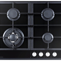 Поверхность: варочная панель • Тип поверхности: газовая • Рабочая поверхность: закаленное стекло • Число конфорок: 4 • Установка: независимая • Газовые конфорки: всего - 4 (1 конфорка "Двойная корона") • Газ-контроль конфорок: есть • Тип управления: механическое • Переключатели: поворотные • Электроподжиг: есть, автоматический • Размеры: 580x500x100 мм • Цвет: панель - черный