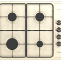 Поверхность: варочная панель • Тип поверхности: газовая • Рабочая поверхность: эмаль • Число конфорок: 4 • Установка: независимая • Газовые конфорки: всего - 4 • Газ-контроль конфорок: есть • Тип управления: механическое • Переключатели: поворотные • Электроподжиг: есть, автоматический • Размеры: 590x510x80 мм • Размер ниши для встраивания: 555x475 мм • Цвет: панель - бежевый