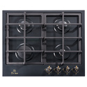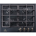 Поверхность: варочная панель • Тип поверхности: газовая • Рабочая поверхность: эмаль • Число конфорок: 4 • Установка: независимая • Газовые конфорки: всего - 4 • Газ-контроль конфорок: есть • Тип управления: механическое • Переключатели: поворотные • Электроподжиг: есть, автоматический • Размеры: 600x510x45 мм • Размер ниши для встраивания: 560x480 мм • Цвет: панель - черный