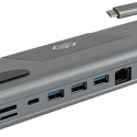 подключение по USB-C • 3 x USB-A • 2 x USB-C • видео до 4K 60 Гц • питание USB-C PD до 100 Вт • LAN-адаптер 1000 Мбит/с • кардридер • корпус металл