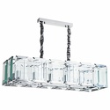 Подвесной светильник стиля модерн для гостиной, кабинета, прихожей или спальни имеет размеры 930x320x750 мм. Арматура светильника окрашена в хромовый цвет. Лампы в комплекте - отсутствуют. В светильнике применяются лампы накаливания или светодиодная LED-лампа. Цвет плафонов - неокрашенный, с прозрачной, рельефной поверхностью. Материал плафонов - стекло. Класс электробезопасности - I, степень пылевлагозащиты (IP) - 20. Максимальная мощность лампы (Вт) - 40. Светильник размещается на потолоке.