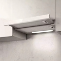 конструкция телескопическая • монтаж для встраивания • ширина 59.8 см • управление механическое/кнопочное • производительность вытяжки 650 м³/ч • цвет белый