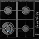 Поверхность: варочная панель • Тип поверхности: газовая • Рабочая поверхность: закаленное стекло • Число конфорок: 4 • Установка: независимая • Газовые конфорки: всего - 4 (1 конфорка "Тройная корона") • Газ-контроль конфорок: есть • Тип управления: механическое • Переключатели: поворотные • Электроподжиг: есть, автоматический • Размеры: 600 мм • Цвет: панель - черный