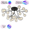 Потолочная люстра стиля модерн для гостиной, кабинета или спальни имеет размеры 750x440 мм. Арматура светильника окрашена в черный цвет. Лампы в комплекте - отсутствуют. В светильнике применяются светодиодная LED-лампа. Цвет плафонов - белый, неокрашенный, с матовой, прозрачной поверхностью. Материал плафонов - стекло. Класс электробезопасности - I, степень пылевлагозащиты (IP) - 20. Максимальная мощность лампы (Вт) - 3. Светильник размещается на потолоке.