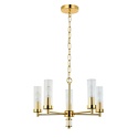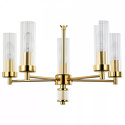 Подвесная люстра стиля модерн для кабинета, прихожей или спальни имеет размеры 460x1310 мм. Арматура светильника окрашена в золотой цвет. Лампы в комплекте - отсутствуют. В светильнике применяются лампы накаливания или светодиодная LED-лампа. Цвет плафонов - неокрашенный, с прозрачной поверхностью. Материал плафонов - стекло. Класс электробезопасности - I, степень пылевлагозащиты (IP) - 20. Максимальная мощность лампы (Вт) - 40. Светильник размещается на потолоке.