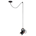 Подвесной светильник стиля техно для гостиной, кабинета, прихожей или спальни имеет размеры 125х90x1500 мм. Арматура светильника окрашена в черный цвет. Лампы в комплекте - отсутствуют. В светильнике применяются лампы накаливания или светодиодная LED-лампа. Цвет плафонов - черный, с матовой поверхностью. Материал плафонов - металл. Класс электробезопасности - I, степень пылевлагозащиты (IP) - 20. Максимальная мощность лампы (Вт) - 40. Светильник размещается на потолоке.