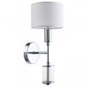 Бра стиля модерн для гостиной, кабинета или спальни имеет размеры 140x330x160 мм. Арматура светильника окрашена в хромовый цвет. Лампы в комплекте - отсутствуют. В светильнике применяются лампы накаливания или светодиодная LED-лампа. Цвет плафонов - белый, неокрашенный, с матовой, прозрачной поверхностью. Материал плафонов - текстиль, стекло. Класс электробезопасности - I, степень пылевлагозащиты (IP) - 20. Максимальная мощность лампы (Вт) - 40. Светильник размещается на стене.