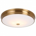 Накладной светильник стиля модерн для гостиной, кабинета, прихожей или спальни имеет размеры 550x120 мм. Арматура светильника окрашена в латунный цвет. Лампы в комплекте - отсутствуют. В светильнике применяются лампы накаливания или светодиодная LED-лампа. Цвет плафонов - белый, с матовой поверхностью. Материал плафонов - стекло. Класс электробезопасности - I, степень пылевлагозащиты (IP) - 20. Максимальная мощность лампы (Вт) - 40. Светильник размещается на потолоке.