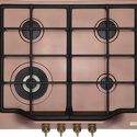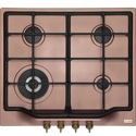 Поверхность: варочная панель • Тип поверхности: газовая • Число конфорок: 4 • Установка: независимая • Газовые конфорки: всего - 4 (1 конфорка "Тройная корона") • Газ-контроль конфорок: есть • Тип управления: механическое • Переключатели: поворотные • Электроподжиг: есть, автоматический • Размеры: 590x510 мм • Размер ниши для встраивания: 550x480 мм • Цвет: панель - медь