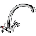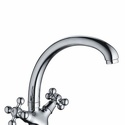 Назначение: кухонный • Конструкция: двухрычажный • Монтаж: горизонтальный • Клапан: керамический • Материал: латунь, покрытие - хром • Монтажные отверстия: 1 отверстие • Форма излива: традиционная • Душевая лейка в комплекте: нет • Донный клапан в комплекте: есть