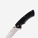 Ganzo 617 — промысловый складной нож, наделенный привлекательным хромированным клинком (марка стали 440) с комбинированной заточкой режущей кромки. Черная пластиковая рукоять хорошо ложится в руку, а конструктивный дизайн внешних панелей обеспечивает надежный крепкий хват. В походном состоянии длина инструмента не превышает 11.7 см, в рабочем — 19.7 см, на клинок отведено 8 см от общей длины.