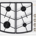 Поверхность: варочная панель • Тип поверхности: газовая • Рабочая поверхность: эмаль • Число конфорок: 4 • Установка: независимая • Газовые конфорки: всего - 4 • Газ-контроль конфорок: есть • Тип управления: механическое • Переключатели: поворотные • Электроподжиг: есть, автоматический • Размеры: 590x510x95 мм • Размер ниши для встраивания: 560x486 мм • Цвет: панель - белый