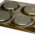 Нет большой конфорки, как бывает на обычных плитах: одна большая, две средних, и маленькая. Здесь - две средние, (одна из которых экспрес-конфорка на 2 КВт) и две маленькие.