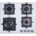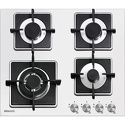 Поверхность: варочная панель • Тип поверхности: газовая • Рабочая поверхность: закаленное стекло • Число конфорок: 4 • Установка: независимая • Газовые конфорки: всего - 4 • Газ-контроль конфорок: есть • Тип управления: механическое • Переключатели: поворотные • Электроподжиг: есть, автоматический • Размеры: 590x510x59 мм • Размер ниши для встраивания: 560x490 мм • Цвет: панель - белый