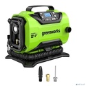 Комплект поставки- Компрессор автомобильный аккумуляторный Greenworks Арт. 3400807, 24 В / 12В;- Шланг высокого давления;- Шланг низкого давления;- Три насадки;- Адаптер для автомобильного прикуривателя 12 В;- Руководство по эксплуатации;- Гарантийный талон.Внимание, этот комплект поставляется без аккумулятора (АКБ) и зарядного устройства (ЗУ).
