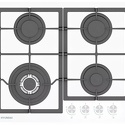газовая на 4 конфорки • закаленное стекло • мощность: 7800 Вт • автоматический электроподжиг • решетки: чугун • независимая установка • размеры (ШхГ): 58x52 см