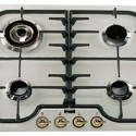 Поверхность: варочная панель • Тип поверхности: газовая • Рабочая поверхность: эмаль • Число конфорок: 4 • Установка: независимая • Газовые конфорки: всего - 4 (1 конфорка "Тройная корона") • Тип управления: механическое • Переключатели: поворотные • Цвет: панель - белый