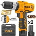 Производитель: Ingco Модель: CIDLI1232 - Тип: дрель-шуруповерт, пистолетная - Обороты: 1350 об/мин, скоростей 2 - Патрон: быстрозажимной, Ø 10 мм Описание