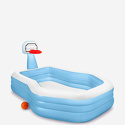 Семейный надувной бассейн INTEX 57183 с баскетбольным кольцом для игр очень большой и глубокий. Прямоугольный и очень просторный бассейн оснащен мягкими бортами и обеспечивают комфорт и безопасность. Такой бассейн отлично подойдет для интересного и активного отдыха. Материал бассейна - прочный винил. В комплект входят: надувной семейный бассейн с баскетбольным кольцом для игр INTEX 57183 серии "Swim Center Shootin Hoops Family Pool", ремонтный комплект, фирменная упаковка.