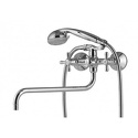 Назначение: универсальный • Конструкция: с раздельными клапанами • Монтаж: вертикальный • Клапан: керамический • Материал: покрытие - хром • Монтажные отверстия: 2 отверстия • Форма излива: традиционная • Душевая лейка в комплекте: есть • Держатель для душевой лейки: на смесителе • Донный клапан в комплекте: есть
