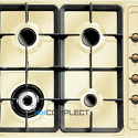 Поверхность: варочная панель • Тип поверхности: газовая • Число конфорок: 4 • Установка: независимая • Газовые конфорки: всего - 4 (1 конфорка "Тройная корона") • Газ-контроль конфорок: есть • Тип управления: механическое • Переключатели: поворотные • Электроподжиг: есть, автоматический • Размеры: 500x580x45 мм • Размер ниши для встраивания: 560x480 мм • Цвет: панель - слоновая кость