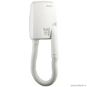Тип: настенный • Мощность: 1200 Вт • Размеры: 182x650x145 мм • Дополнительные функции: встроенная розетка, функция сушилки для рук • Класс защиты: IPX1 • Автовключение при снятии фена с держателя: есть • Уровень шума: 65 дБ • Цвет: белый