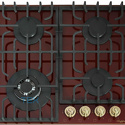 Габариты поверхности (вхшхг) (см): 9.6х59х52Газ-контроль: естьКоличество конфорок: 4Конфорка быстрого нагрева (wok): естьРешетки: чугунныеЦвет: бордовый/переключатели цвета бронзаСтрана-производитель: Италия