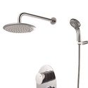 Комплектация - Верхний душ, Держатель душевой лейки, душевой шланг, ручной душ, Назначение - Универсальный, Термостат - Нет, Покрытие - Хром, Количество монтажных отверстий - 2, Аэратор - Есть, Материал корпуса - Латунь, Встраиваемый - Да, Цвет - Серебристый, Поворотный излив - Нет, Тип - Однозахватный, Тип подводки - Гибкая, Присоединительный размер - 1\2", Донный клапан - Нет, Высота - 25, Глубина - 10.5, Ширина - 13, Форма излива - Традиционная