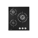 Поверхность: варочная панель • Тип поверхности: газовая • Рабочая поверхность: закаленное стекло • Число конфорок: 3 • Установка: независимая • Газовые конфорки: всего - 3 • Газ-контроль конфорок: есть • Тип управления: механическое • Переключатели: поворотные • Электроподжиг: есть, автоматический • Размеры: 450x510x40 мм • Размер ниши для встраивания: 400x480 мм • Цвет: панель - черный