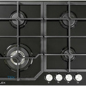 Поверхность: варочная панель • Тип поверхности: газовая • Рабочая поверхность: закаленное стекло • Число конфорок: 4 • Установка: независимая • Газовые конфорки: всего - 4 • Газ-контроль конфорок: есть • Тип управления: механическое • Переключатели: поворотные • Электроподжиг: есть, автоматический • Размеры: 600x510x40 мм • Размер ниши для встраивания: 560x480 мм • Цвет: панель - черный