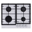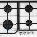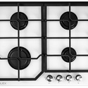 Поверхность: варочная панель • Тип поверхности: газовая • Рабочая поверхность: закаленное стекло • Число конфорок: 4 • Установка: независимая • Газовые конфорки: всего - 4 • Тип управления: механическое • Переключатели: поворотные • Электроподжиг: есть, автоматический • Размеры: 600x510x95 мм • Размер ниши для встраивания: 560x480 мм • Цвет: панель - белый