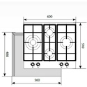 газовая на 4 конфорки • закаленное стекло • мощность: 9250 Вт • автоматический электроподжиг • газ-контроль • решетки: чугун • независимая установка • размеры (ШхГ): 60x51 см