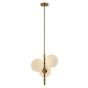 Люстра на штанге стиля модерн для гостиной, кабинета или спальни имеет размеры 390x1220 мм. Арматура светильника окрашена в латунный цвет. Лампы в комплекте - отсутствуют. В светильнике применяются лампы накаливания или светодиодная LED-лампа. Цвет плафонов - белый, с матовой поверхностью. Материал плафонов - стекло. Класс электробезопасности - I, степень пылевлагозащиты (IP) - 20. Максимальная мощность лампы (Вт) - 40. Светильник размещается на потолоке.