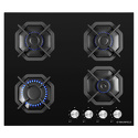 Поверхность: варочная панель • Тип поверхности: газовая • Рабочая поверхность: закаленное стекло • Число конфорок: 4 • Установка: независимая • Газовые конфорки: всего - 4 • Газ-контроль конфорок: есть • Тип управления: механическое • Переключатели: поворотные • Электроподжиг: есть, автоматический • Размеры: 590x515x51 мм • Размер ниши для встраивания: 560x485 мм • Цвет: панель - черный