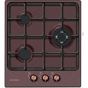 Поверхность: варочная панель • Тип поверхности: газовая • Рабочая поверхность: эмаль • Число конфорок: 3 • Установка: независимая • Газовые конфорки: всего - 3 (1 конфорка "Тройная корона") • Газ-контроль конфорок: есть • Тип управления: механическое • Переключатели: поворотные • Электроподжиг: есть, автоматический • Размеры: 440x500x55 мм • Размер ниши для встраивания: 410x485 мм • Цвет: панель - медь