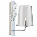 Бра стиля флора для гостиной, кабинета или спальни имеет размеры 130x300x220 мм. Арматура светильника окрашена в хромовый цвет. Лампы в комплекте - отсутствуют. В светильнике применяются галогеновая лампа или светодиодная LED-лампа. Цвет плафонов - неокрашенный, с прозрачной поверхностью. Материал плафонов - стекло. Класс электробезопасности - I, степень пылевлагозащиты (IP) - 20. Максимальная мощность лампы (Вт) - 28. Светильник размещается на стене.