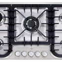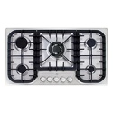 Поверхность: варочная панель • Тип поверхности: газовая • Рабочая поверхность: нерж.сталь • Число конфорок: 5 • Установка: независимая • Газовые конфорки: всего - 5 (1 конфорка "Тройная корона") • Газ-контроль конфорок: есть • Тип управления: механическое • Переключатели: поворотные • Электроподжиг: есть • Размеры: 860x510 мм • Размер ниши для встраивания: 840x480 мм • Цвет: панель - нерж.сталь