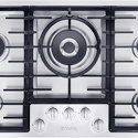 Поверхность: варочная панель • Тип поверхности: газовая • Рабочая поверхность: нерж.сталь • Число конфорок: 5 • Установка: независимая • Газовые конфорки: всего - 5 (1 конфорка "Тройная корона") • Газ-контроль конфорок: есть • Тип управления: механическое • Переключатели: поворотные • Электроподжиг: есть, автоматический • Размеры: 888x508x72 мм • Размер ниши для встраивания: 862x490 мм • Цвет: панель - нерж.сталь