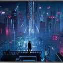 ткань • прошитые края • 400x1000 мм • цвет синий/черный/цветной принт