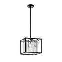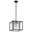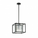 Подвесной светильник стиля модерн для гостиной, кабинета, прихожей или спальни имеет размеры 300x300x1360 мм. Арматура светильника окрашена в черный цвет. Лампы в комплекте - отсутствуют. В светильнике применяются галогеновая лампа или светодиодная LED-лампа. Цвет плафонов - неокрашенный, черный, с матовой, прозрачной поверхностью. Материал плафонов - металл, хрусталь. Класс электробезопасности - I, степень пылевлагозащиты (IP) - 20. Максимальная мощность лампы (Вт) - 40. Светильник размещается на потолоке.