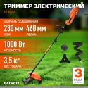 Производитель: Patriot Модель: ET 1000 - Переносной триммер - электрический двигатель (950 Вт) от сетевого кабеля - ширина скашивания 46 см - 6.7 кг Описание