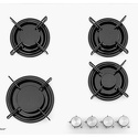 Поверхность: варочная панель • Тип поверхности: газовая • Рабочая поверхность: закаленное стекло • Число конфорок: 4 • Установка: независимая • Газовые конфорки: всего - 4 • Тип управления: механическое • Переключатели: поворотные • Электроподжиг: есть, автоматический • Размеры: 580x500x60 мм • Размер ниши для встраивания: 560x480 мм • Цвет: панель - белый, черный