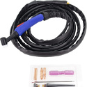 Комплект поставки1. Горелка WP- 26, 4 м. - 1 шт.2. Кабель заземления 3 м. - 1 шт3. Кабель с электрододержателем 3 м. - 1 шт4. Сопло - 2 шт5. Короткий хвостовик - 1 шт6. Длинный хвостовик - 1 шт7. Цанга - 2 шт8. Корпус цанги - 2 шт9. Вольфрамовый электрод - 2 шт. (1,6 мм, 2,4 мм)10. Сварочный аппарат11. Паспорт