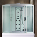 Закрытая кабина • комбинированная • угловая • двери раздвижные • гидромассаж • баня • сауна • тропический душ • электронное управление • вентилятор • 80x170x218 см