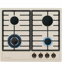 Поверхность: варочная панель • Тип поверхности: газовая • Рабочая поверхность: эмаль • Число конфорок: 4 • Установка: независимая • Газовые конфорки: всего - 4 (1 конфорка "Двойная корона") • Газ-контроль конфорок: есть • Тип управления: механическое • Переключатели: поворотные • Электроподжиг: есть, автоматический • Размеры: 580x510 мм • Размер ниши для встраивания: 560x480 мм • Цвет: панель - бежевый