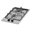 Поверхность: варочная панель • Тип поверхности: газовая • Рабочая поверхность: нерж.сталь • Число конфорок: 2 • Установка: независимая • Газовые конфорки: всего - 2 • Газ-контроль конфорок: есть • Тип управления: механическое • Переключатели: поворотные • Электроподжиг: есть, автоматический • Размеры: 300x520 мм • Размер ниши для встраивания: 270x490 мм • Цвет: панель - нерж.сталь